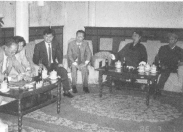 1986年7月本觀道侶在北京白雲觀會客廳與時任中國道教協會主任黃明及白雲觀主持劉之維作道教文化交流。​